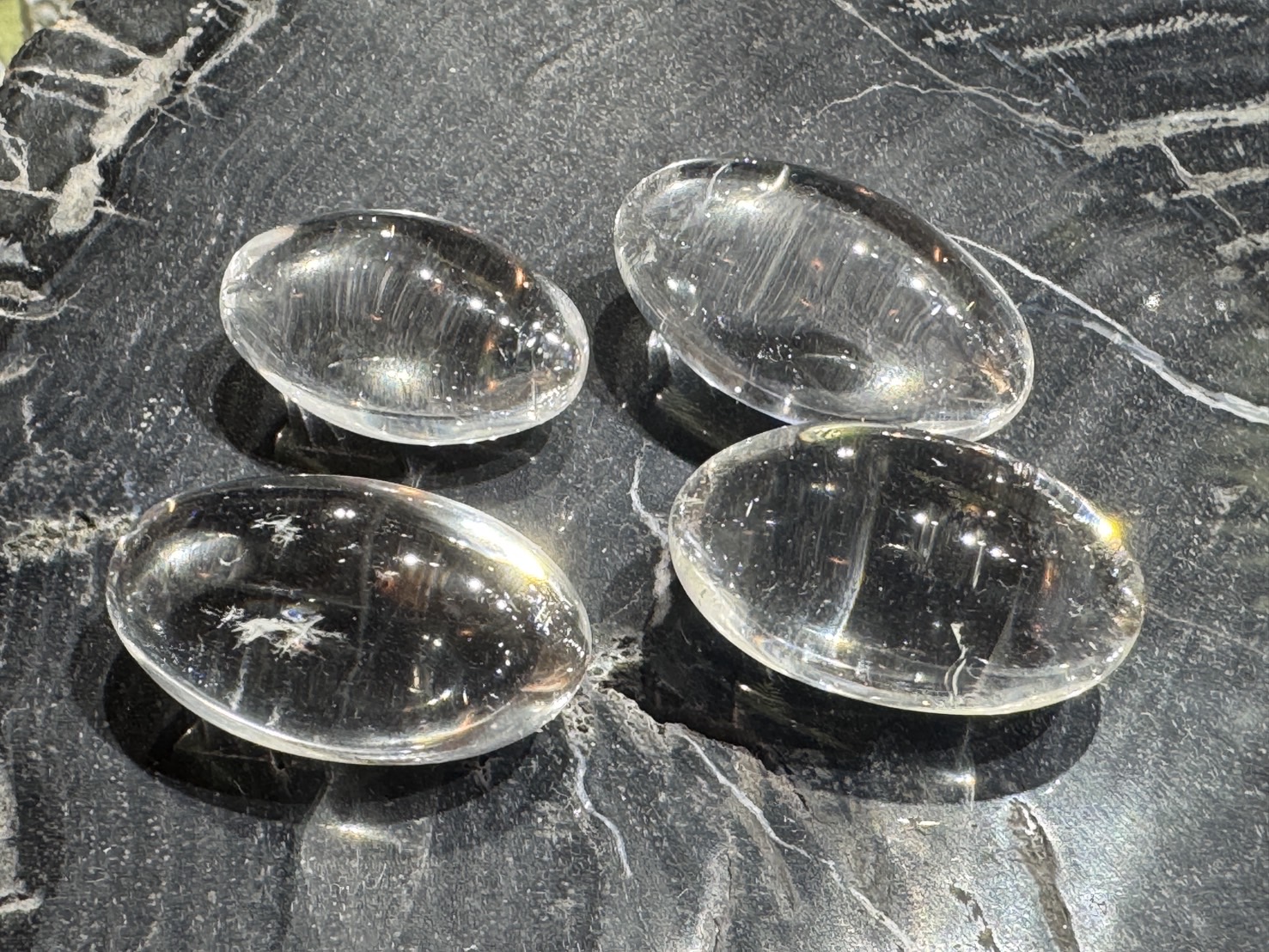 「繭玉」の形状に研磨した高品質の水晶(クリアクォーツ)です。